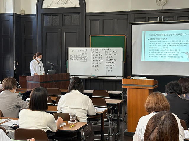 各事業所による身体拘束の現状報告、グループワークによる共通課題の整理、身体拘束の要因分析を通じて、最小化に向けた看護支援方針を策定しました。