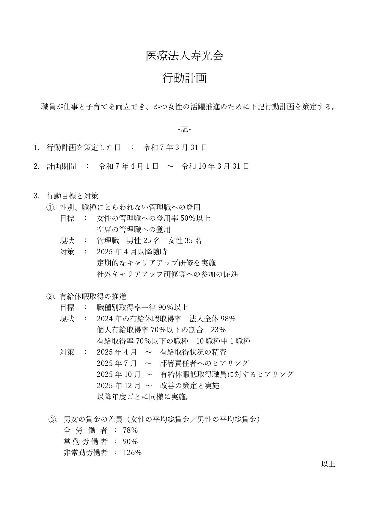 一般事業主行動計画