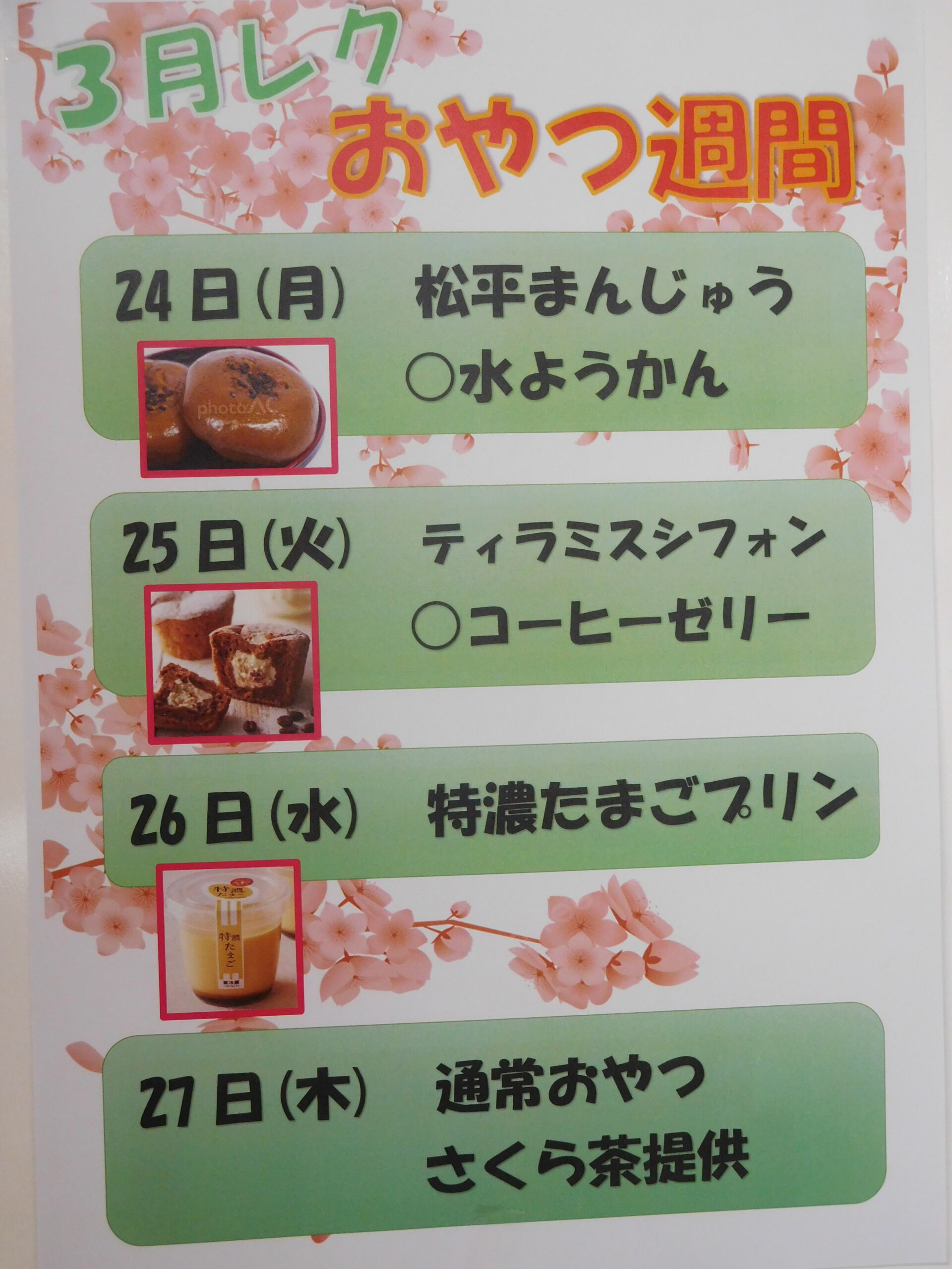おまんじゅう、水ようかん、プリンなど、春を感じる甘いひととき🌸